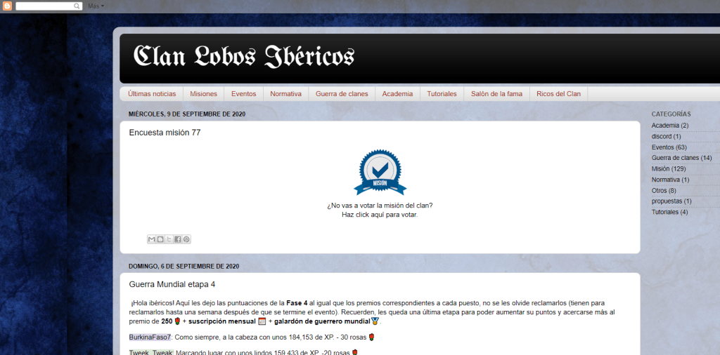 Holi! Más que nada de manera informativa y por si les da curiosidad, les pongo aquí el link de la página de noticias anterior, donde podrán checar aspectos anteriores que tuvieron lugar en el clan, eventos, guerra de clanes y unas que otras cosillas interesantes, sin más les dejo, bello día!